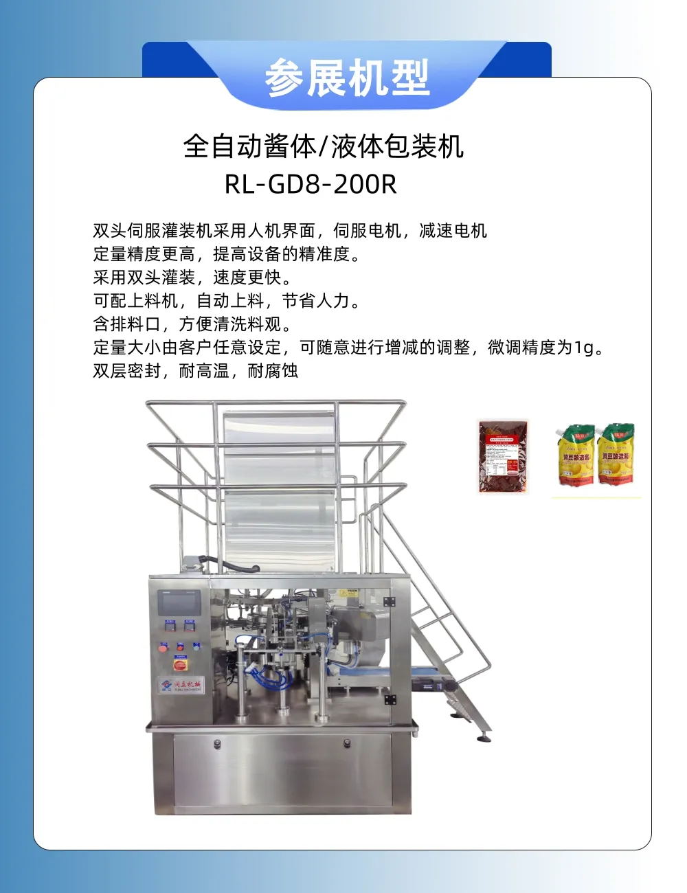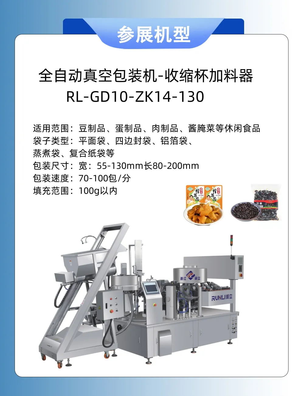 浙江潤(rùn)立智能科技有限公司提供粉末包裝機(jī)、 給袋式包裝機(jī)、全自動(dòng)包裝機(jī)、自動(dòng)顆粒包裝機(jī)、液體包裝機(jī)、醬腌菜包裝機(jī)、自動(dòng)食品包裝機(jī),推薦選用以下產(chǎn)品